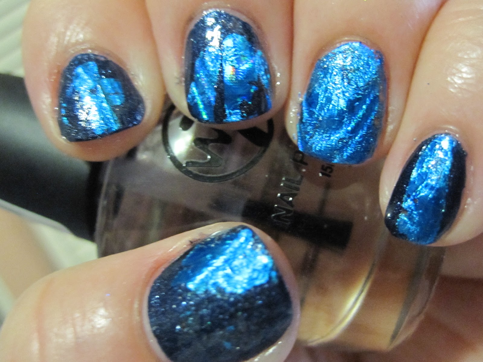 Another 'subversive' color of polish - black. Now, it's everywhere, and I love to wear it, too, though not often all by itself. I love layering with it or using it for nail art best. It's hard to cover up such a neat texture, though!