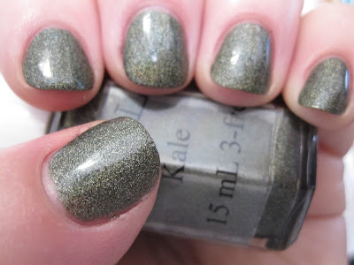 Kale is a dark, forest green holo. You can see the yellow undertones, like with Katydid, but it's not as predominant. There is also a hint of a black undertone to Kale.