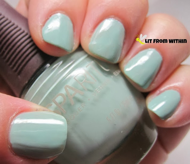 But first, I start with a light blue - SpaRitual Energy - a smooth, light robin's egg blue. I love SpaRitual polishes. I love the cap, too. Nice, soft, rubbery, and easy to use.