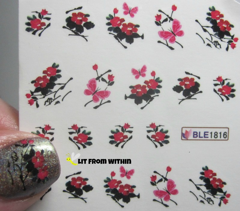 I bought these water decals from Born Pretty Store during one of their sales. (If you'd like to go shopping, feel free to use my coupon (GVX31) for 10% off!) I love water decals - they are so easy to use.